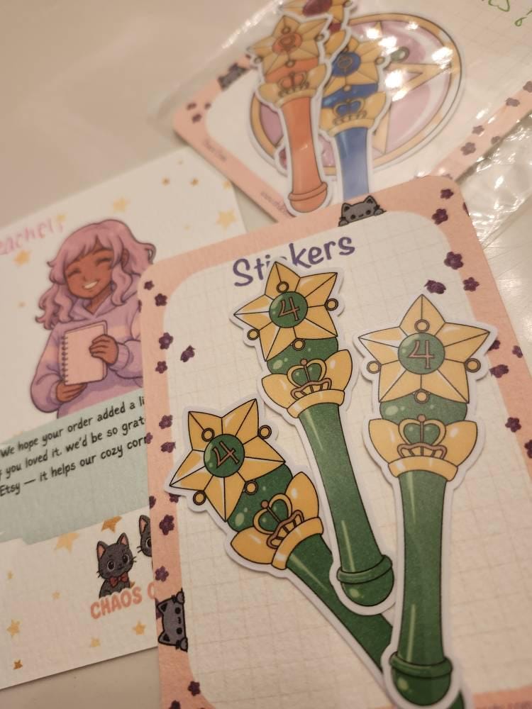 Cute Sailor Scout Wands vinyl sticker perfect for decorating your laptop, journal, water bottle, or planner!